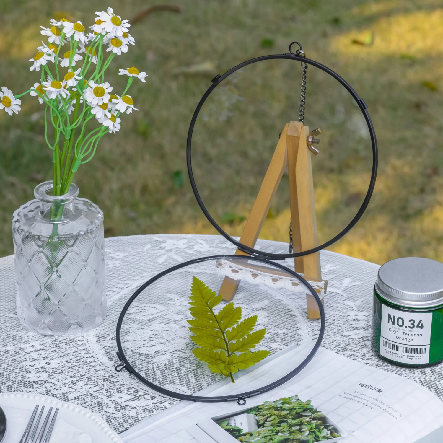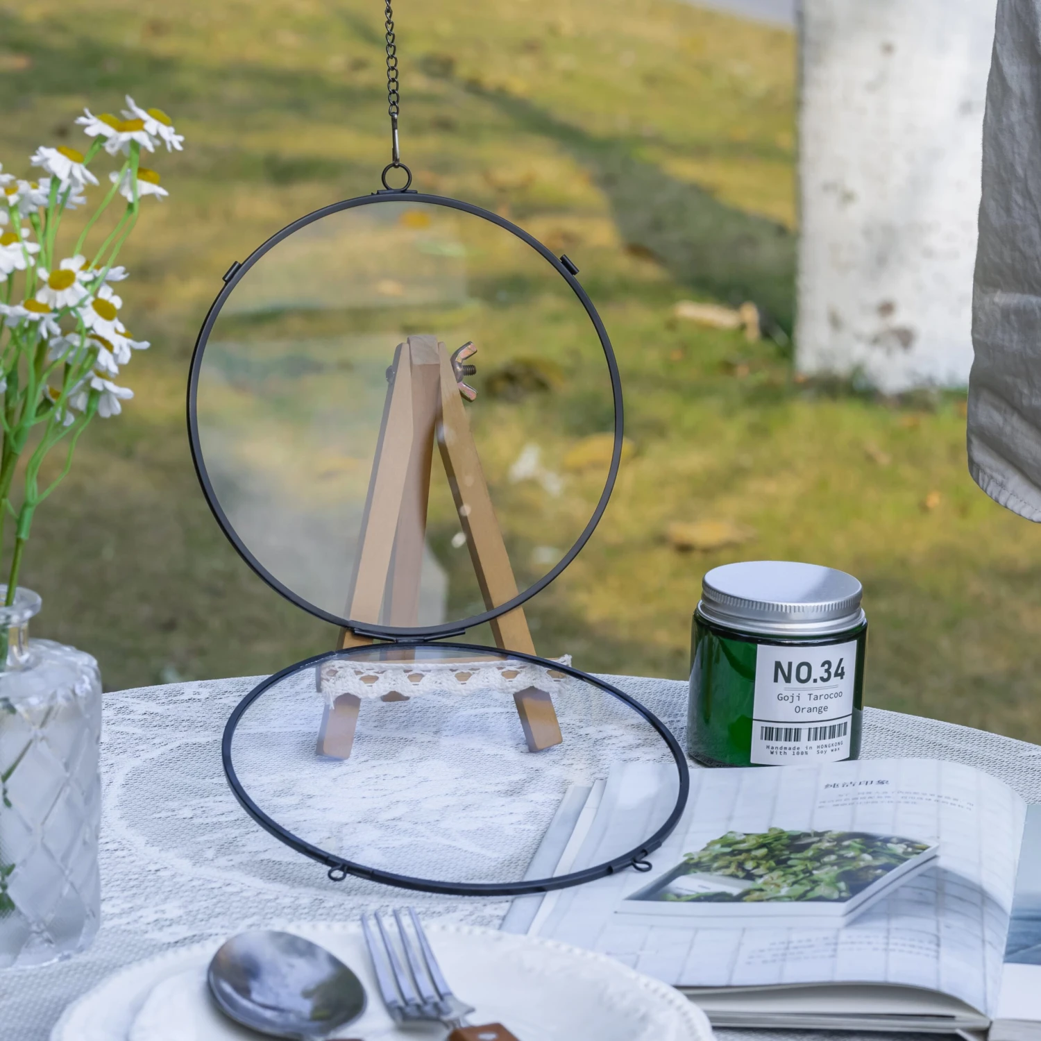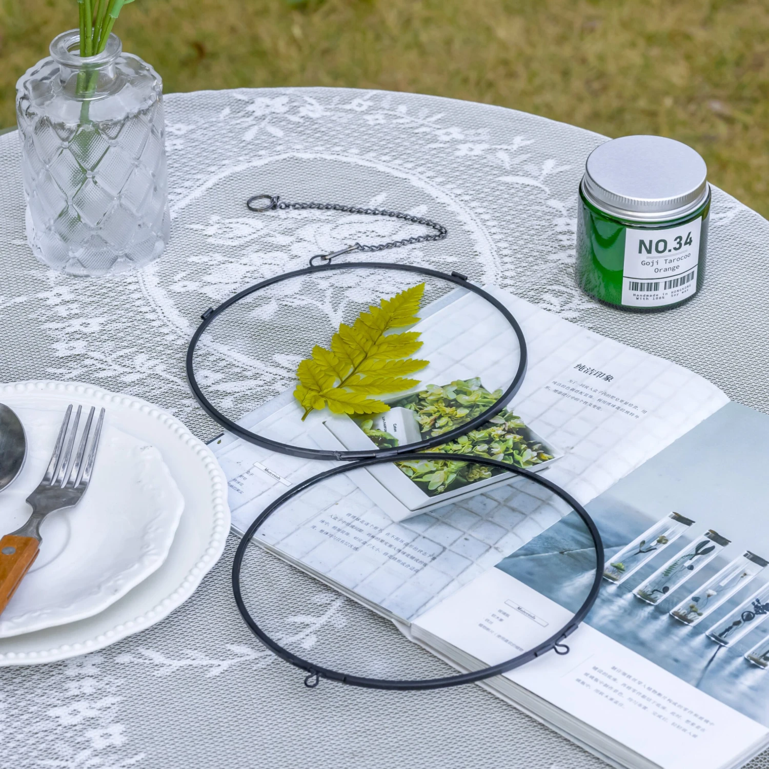 3. Handmade round double glass brass and glass frame with black color, go well with pressed flowers and plants.