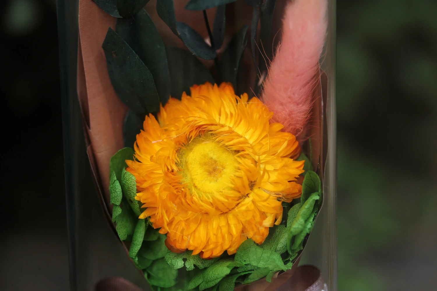 This mini bouquet is made of dried flowers, put in a glass tube, and suitable for gifts.