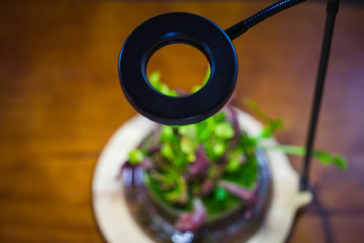 Product review from me: The round board looks good. The moss and other plants look great in the light. The timer and adjust light function are useless because I turn on the light all day and night. After using for weeks (on all the way), the moss close to the light turns out a lighter green. The other terrarium plants are most without obvious difference from those without light. The fittonia is the exception, and they grow crazily.