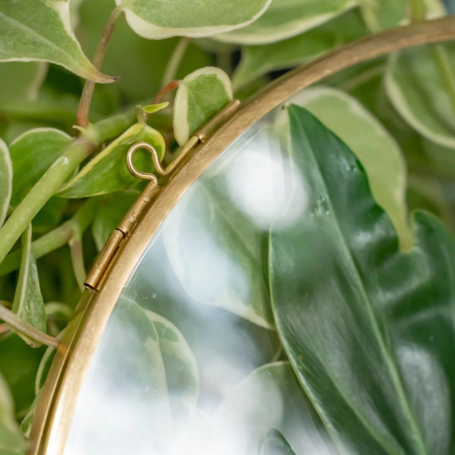 2. Handmade round double glass brass and glass frame with a natural vintage gold color go well with pressed flowers and plants.