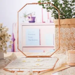 Wall Hanging Long Octagon Herbarium Copper Glass Frame For Pressed Flowers Dried Floating Frame