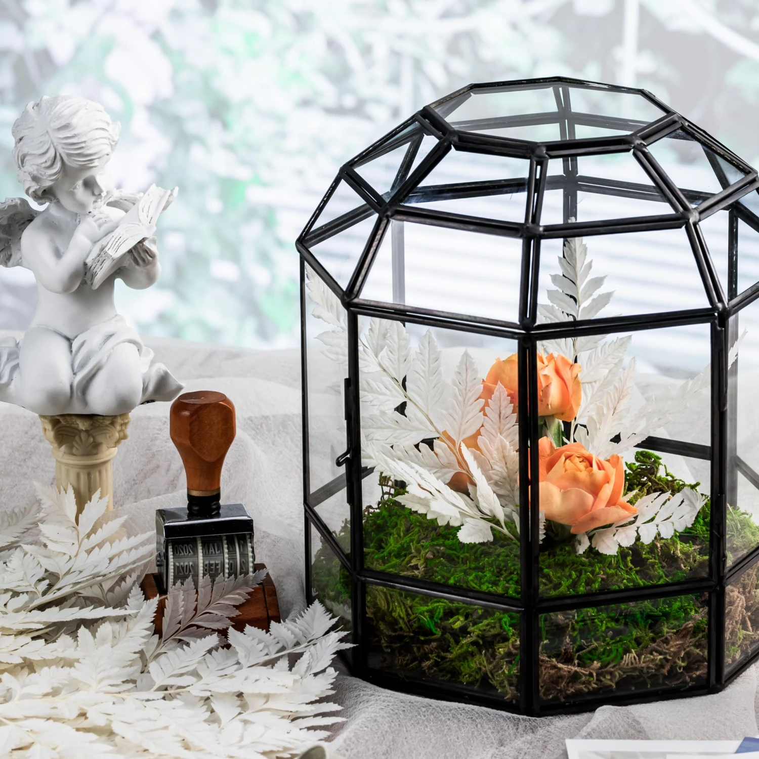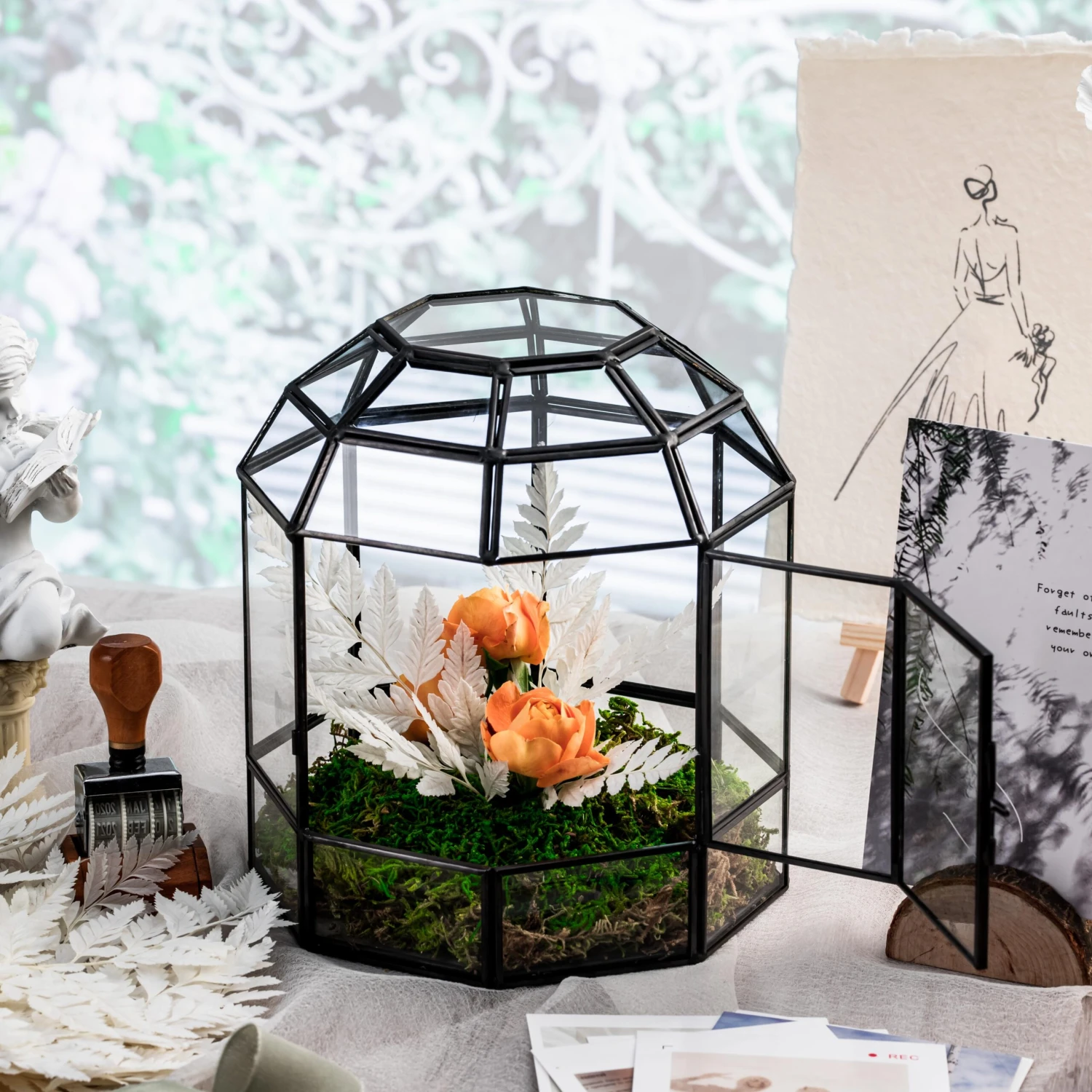 Handmade House Shape Glass Black Geometric Terrarium With Lid For Succulent Moss Airplants Cacti