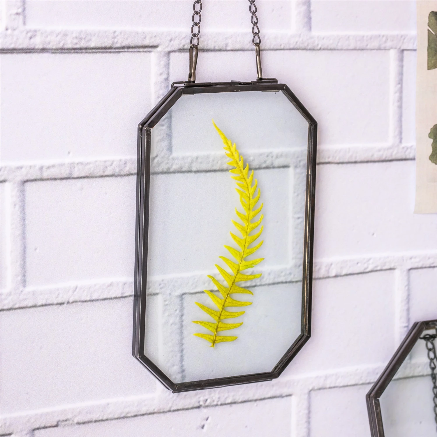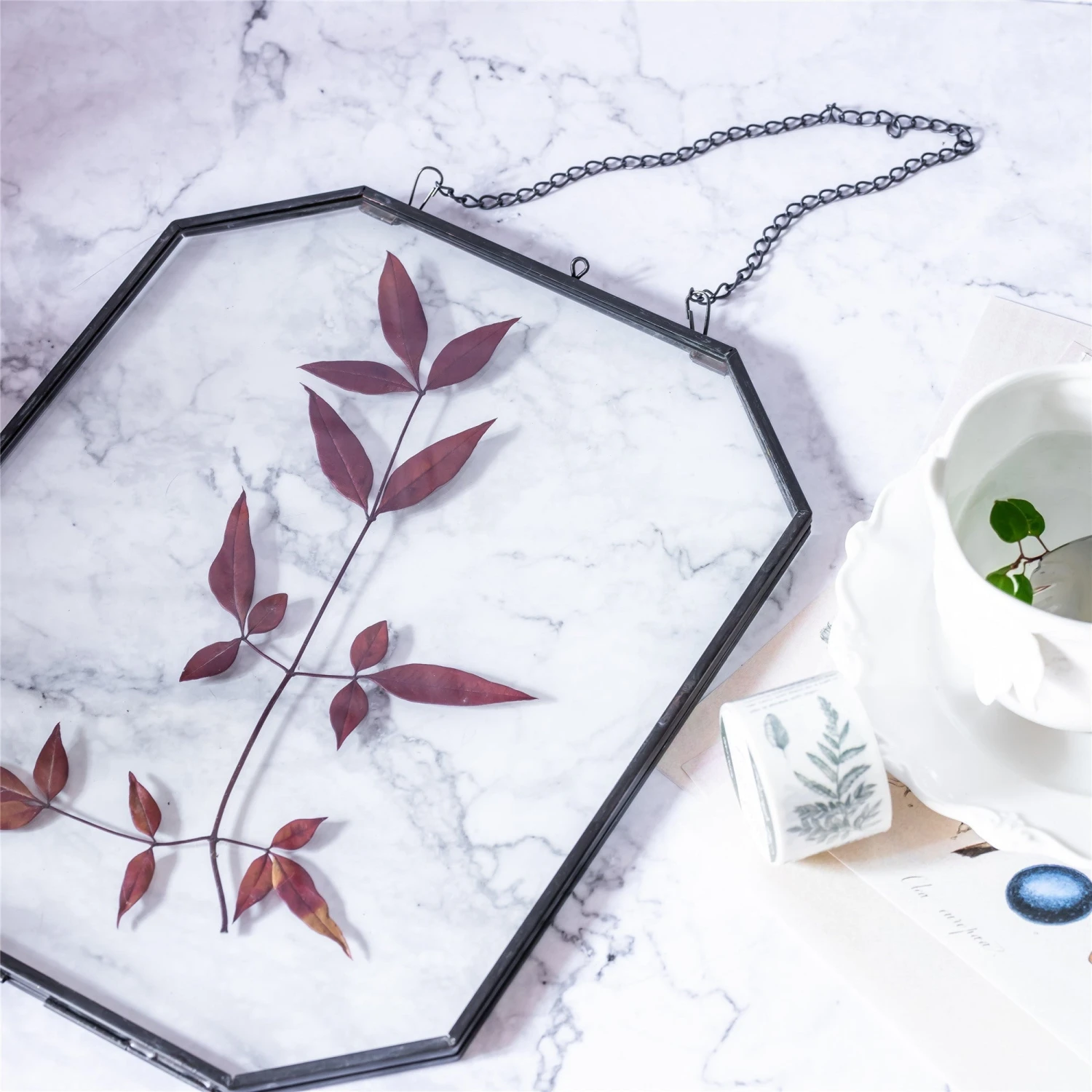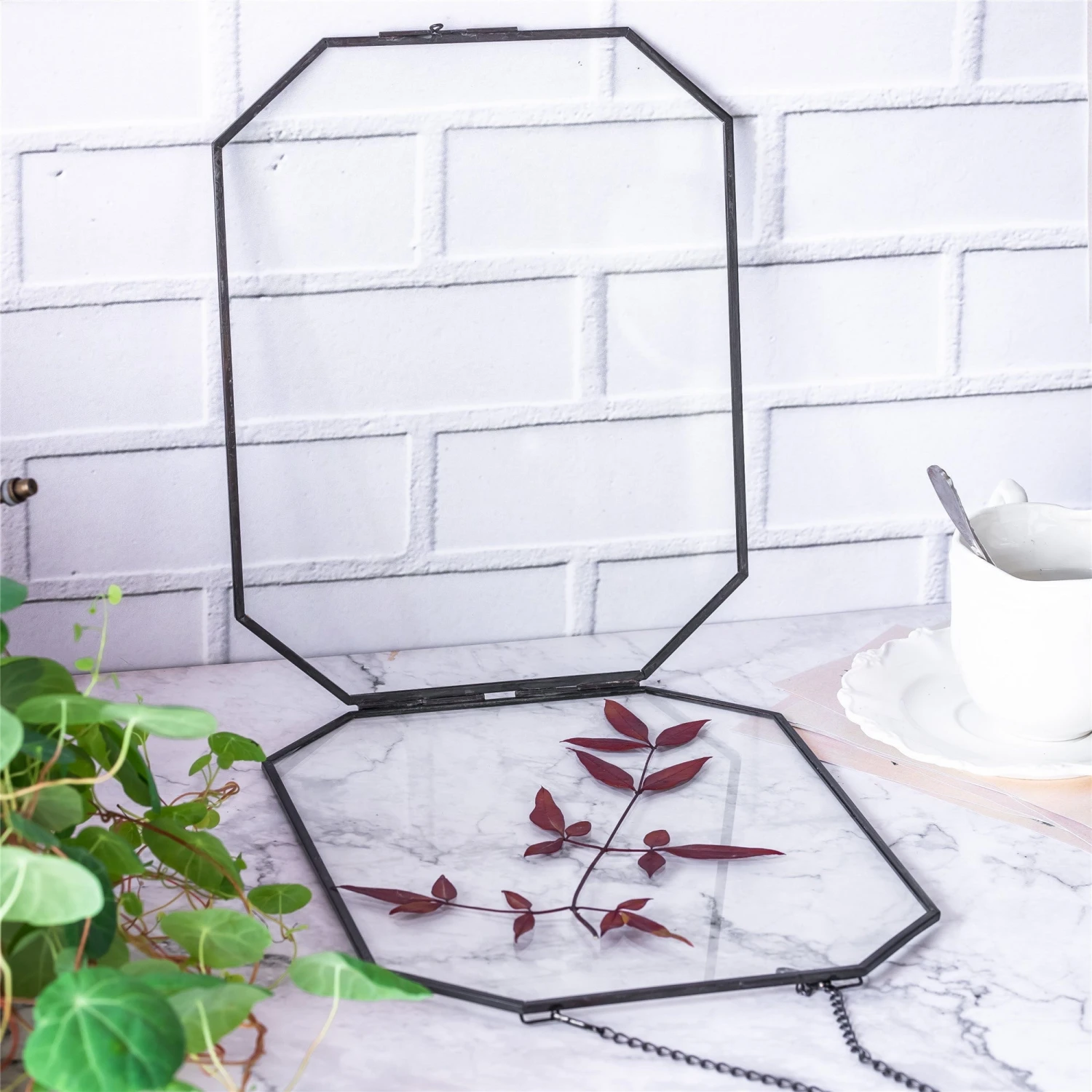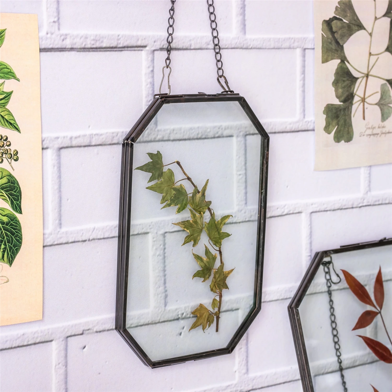 Wall Hanging Black Long Octagon Herbarium Brass Glass Frame For Pressed Flowers Dried Floating Frame