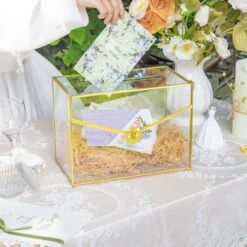 Handmade Vintage Geometric Glass Card Box Organizer Terrarium With Latch For Wedding Reception